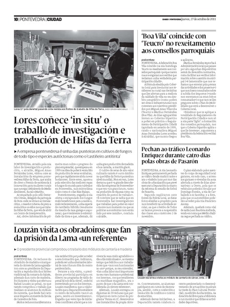Lores coñece ‘in situ’ o traballo de investigación produción de Hifas da Terra
